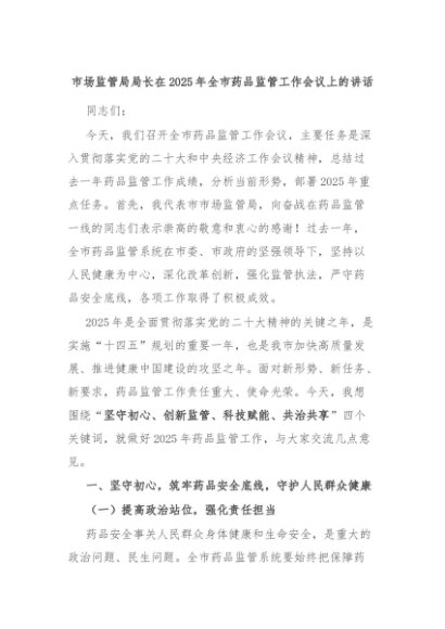【七哥公文】2025年:市场监管局局长在2025年全市药品监管工作会议上的讲话+更多免费公文+VX:QiGeGongWen2024