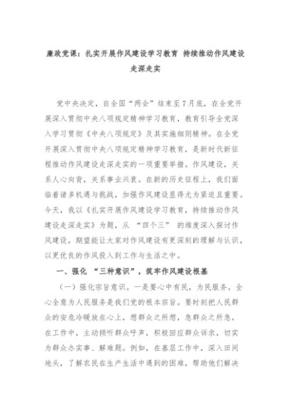 【七哥公文】2025年:廉政党课:扎实开展作风建设学习教育 持续推动作风建设走深走实+更多免费公文+VX:QiGeGongWen2024
