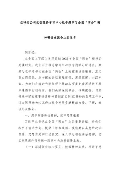 【七哥公文】2025年:在移动公司党委理论学习中心组专题学习全国“两会”精神研讨交流会上的发言+更多免费公文+VX:QiGeGongWen2024