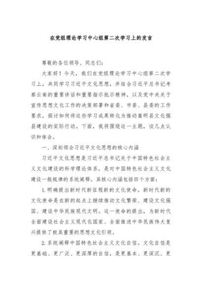 / 【七哥公文】2025年:在党组理论学习中心组第二次学习上的发言+更多免费公文+VX:QiGeGongWen2024
