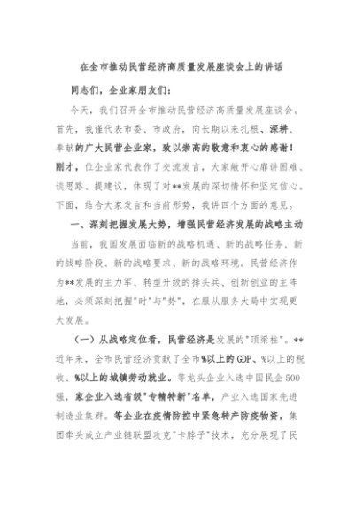 / 【七哥公文】2025年:在全市推动民营经济高质量发展座谈会上的讲话+更多免费公文+VX:QiGeGongWen2024