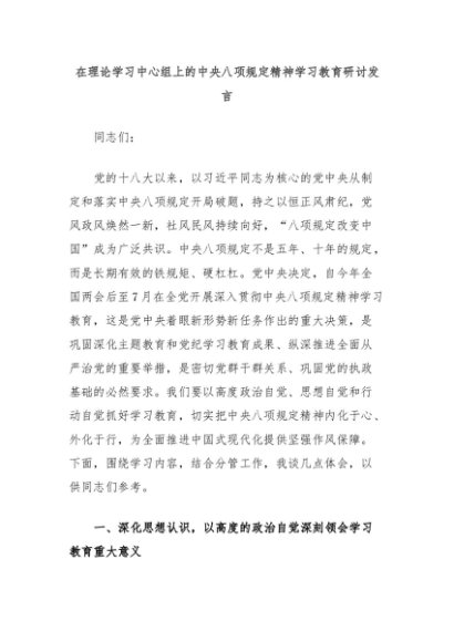 【七哥公文】2025年:在理论学习中心组上的中央八项规定精神学习教育研讨发言+更多免费公文+VX:QiGeGongWen2024