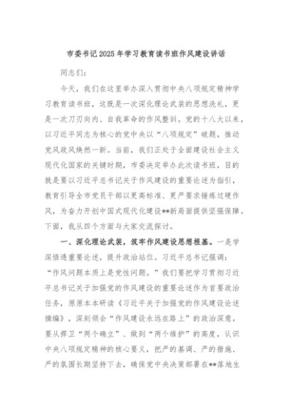 / 【七哥公文】2025年:市委书记2025年学习教育读书班作风建设讲话+更多免费公文+VX:QiGeGongWen2024