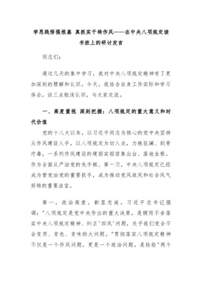 【七哥公文】2025年:学思践悟强根基 真抓实干转作风——在中央八项规定读书班上的研讨发言+更多免费公文+VX:QiGeGongWen2024