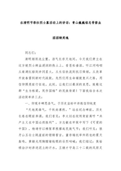 【七哥公文】2025年:在清明节祭扫烈士墓活动上的讲话:青山巍巍铭忠骨碧血滔滔铸英魂+更多免费公文+VX:QiGeGongWen2024