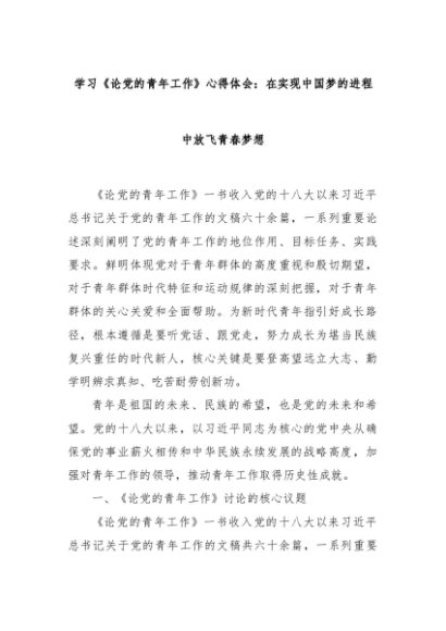 【七哥公文】2025年:学习《论党的青年工作》心得体会:在实现中国梦的进程中放飞青春梦想+更多免费公文+VX:QiGeGongWen2024