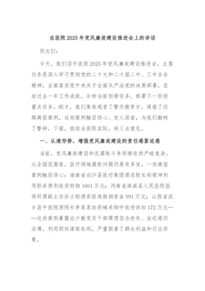 / 【七哥公文】2025年:在医院2025年党风廉政建设推进会上的讲话+更多免费公文+VX:QiGeGongWen2024