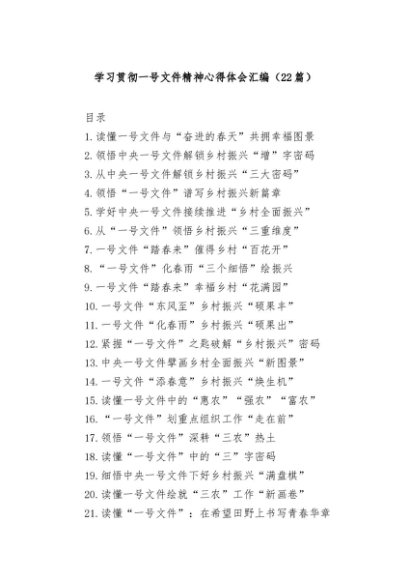 / 【七哥公文】2025年:(22篇)学习贯彻中央一号文件精神心得体会汇编+更多免费公文+VX:QiGeGongWen2024