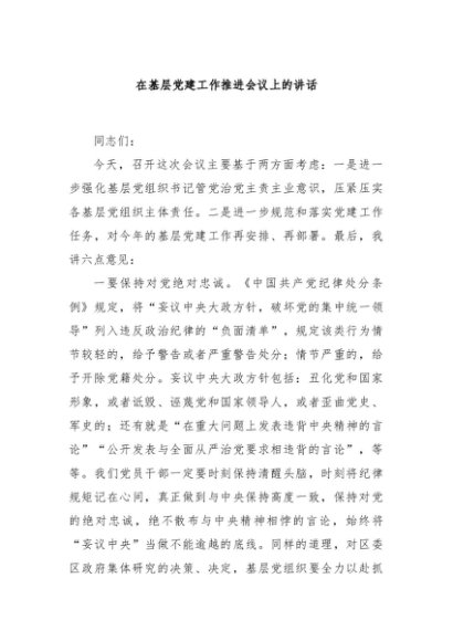 / 【七哥公文】2025年:在基层党建工作推进会议上的讲话+更多免费公文+VX:QiGeGongWen2024