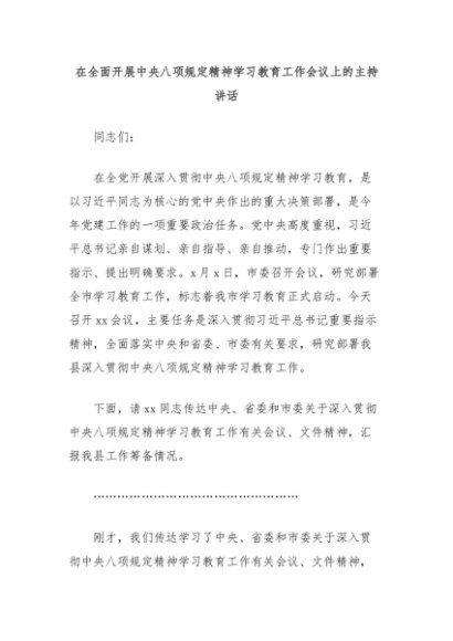 【七哥公文】2025年:在全面开展中央八项规定精神学习教育工作会议上的主持讲话+更多免费公文+VX:QiGeGongWen2024