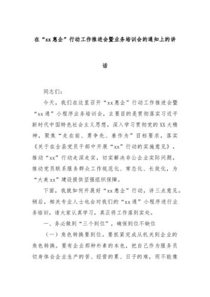 【七哥公文】2025年:在“xx惠企”行动工作推进会暨业务培训会的通知上的讲话+更多免费公文+VX:QiGeGongWen2024