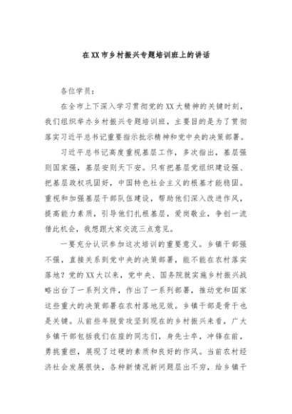 / 【七哥公文】2025年:在XX市乡村振兴专题培训班上的讲话+更多免费公文+VX:QiGeGongWen2024