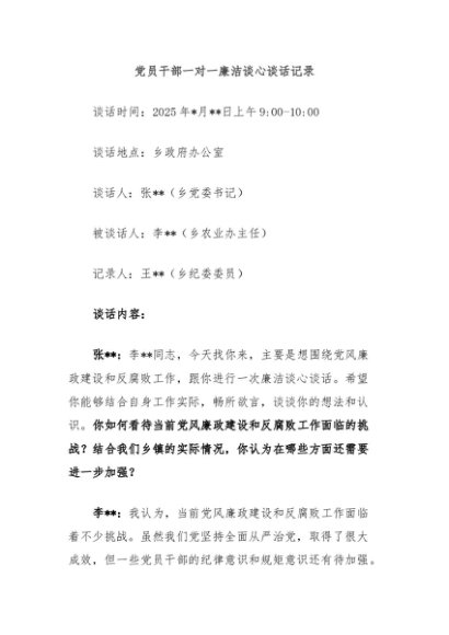 / 【七哥公文】2025年:党员干部一对一廉洁谈心谈话记录+更多免费公文+VX:QiGeGongWen2024