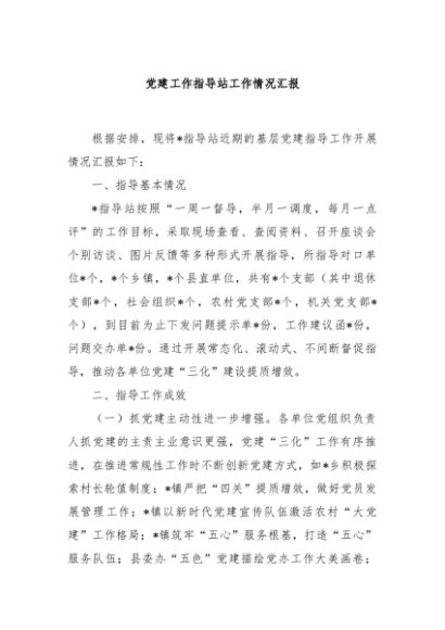 / 【七哥公文】2025年:党建工作指导站工作情况汇报+更多免费公文+VX:QiGeGongWen2024