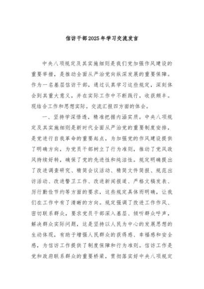 / 【七哥公文】2025年:信访干部2025年学习交流发言+更多免费公文+VX:QiGeGongWen2024
