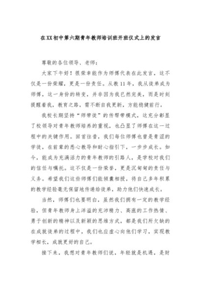 / 【七哥公文】2025年:在XX初中第六期青年教师培训班开班仪式上的发言+更多免费公文+VX:QiGeGongWen2024