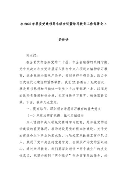 【七哥公文】2025年:在2025年县委党建领导小组会议暨学习教育工作部署会上的讲话+更多免费公文+VX:QiGeGongWen2024