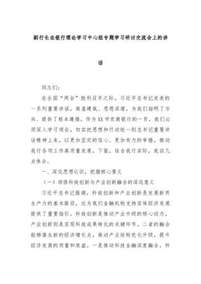 【七哥公文】2025年:副行长在银行理论学习中心组专题学习研讨交流会上的讲话+更多免费公文+VX:QiGeGongWen2024