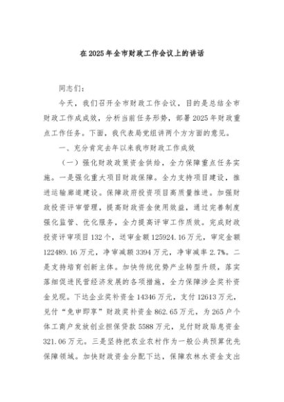 / 【七哥公文】2025年:在2025年全市财政工作会议上的讲话+更多免费公文+VX:QiGeGongWen2024