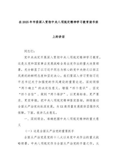 【七哥公文】2025年:在2025年市委深入贯彻中央八项规定精神学习教育读书班上的讲话+更多免费公文+VX:QiGeGongWen2024