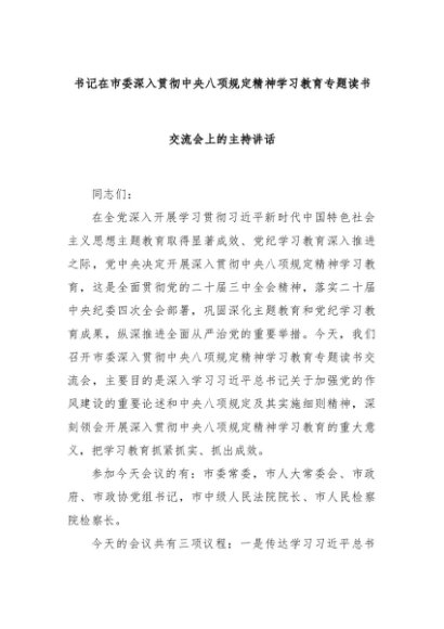 【七哥公文】2025年:书记在市委深入贯彻中央八项规定精神学习教育专题读书交流会上的主持讲话+更多免费公文+VX:QiGeGongWen2024