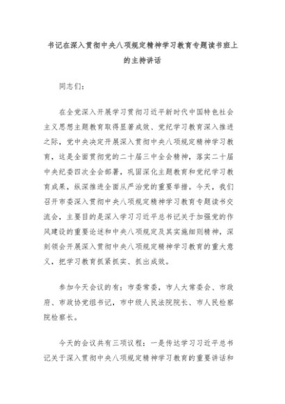 【七哥公文】2025年:书记在深入贯彻中央八项规定精神学习教育专题读书班上的主持讲话+更多免费公文+VX:QiGeGongWen2024
