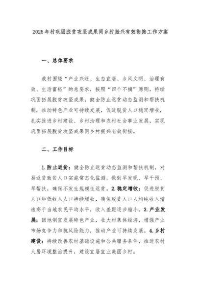 【七哥公文】2025年:2025年村巩固脱贫攻坚成果同乡村振兴有效衔接工作方案+更多免费公文+VX:QiGeGongWen2024
