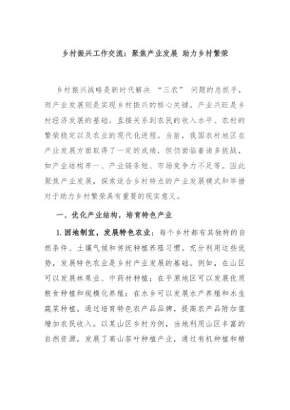 / 【七哥公文】2025年:乡村振兴工作交流:聚焦产业发展 助力乡村繁荣+更多免费公文+VX:QiGeGongWen2024