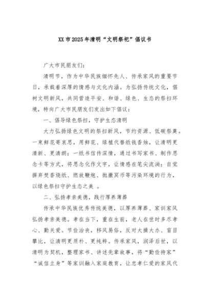 / 【七哥公文】2025年:XX市2025年清明“文明祭祀”倡议书+更多免费公文+VX:QiGeGongWen2024