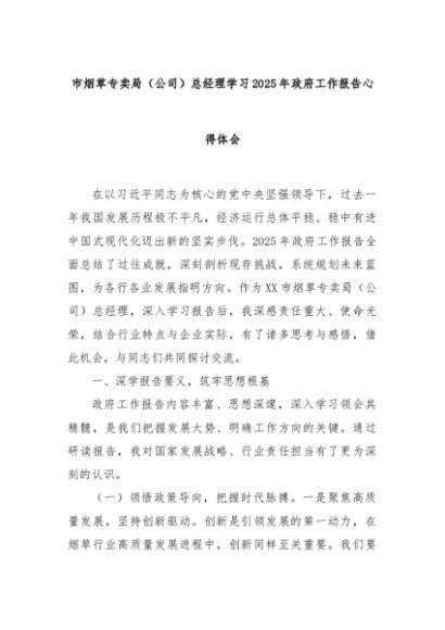 【七哥公文】2025年:市烟草专卖局(公司)总经理学习2025年政府工作报告心得体会+更多免费公文+VX:QiGeGongWen2024
