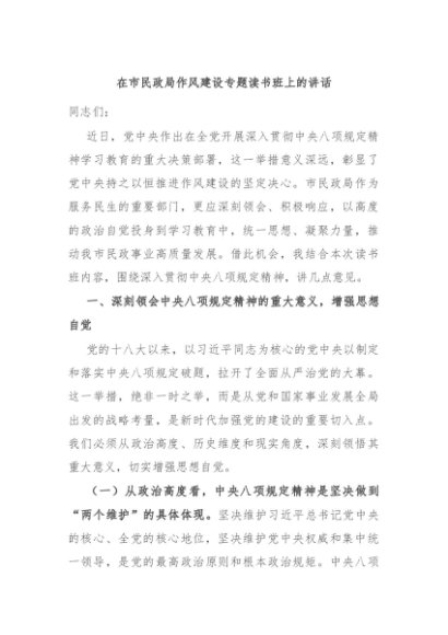 / 【七哥公文】2025年:在市民政局作风建设专题读书班上的讲话+更多免费公文+VX:QiGeGongWen2024