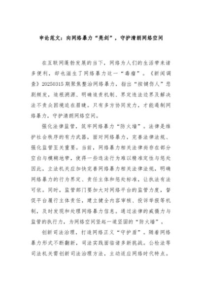 / 【七哥公文】2025年:申论范文:向网络暴力“亮剑”,守护清朗网络空间+更多免费公文+VX:QiGeGongWen2024
