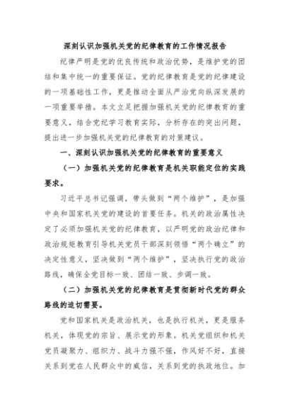 / 【七哥公文】2025年:深刻认识加强机关党的纪律教育的工作情况报告+更多免费公文+VX:QiGeGongWen2024