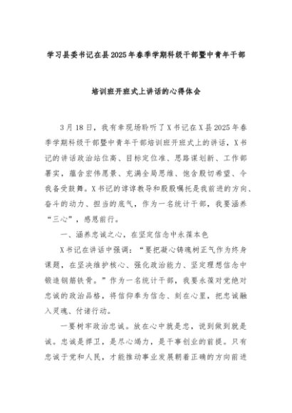 【七哥公文】2025年:学习县委书记在县2025年春季学期科级干部暨中青年干部培训班开班式上讲话的心得体会+更多免费公文+VX:QiGeGongWen2024