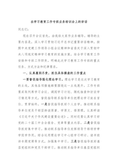 【七哥公文】2025年:在学习教育工作专班业务培训会上的讲话+更多免费公文+VX:QiGeGongWen2024