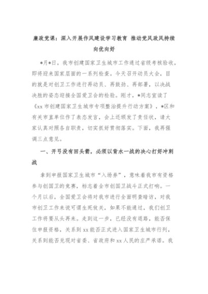【七哥公文】2025年:廉政党课:深入开展作风建设学习教育 推动党风政风持续向优向好+更多免费公文+VX:QiGeGongWen2024