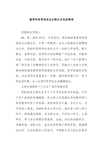 / 【七哥公文】2025年:教育和体育局安全办副主任先进事迹+更多免费公文+VX:QiGeGongWen2024