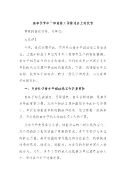 / 【七哥公文】2025年:在单位青年干部培养工作推进会上的发言+更多免费公文+VX:QiGeGongWen2024