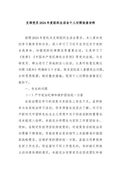 / 【七哥公文】2025年:支部党员2024年度组织生活会个人对照检查材料+更多免费公文+VX:QiGeGongWen2024