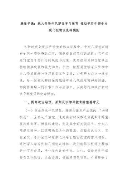 【七哥公文】2025年:政党课:深入开展作风建设学习教育 推动党员干部争当现代化建设先锋模范+更多免费公文+VX:QiGeGongWen2024