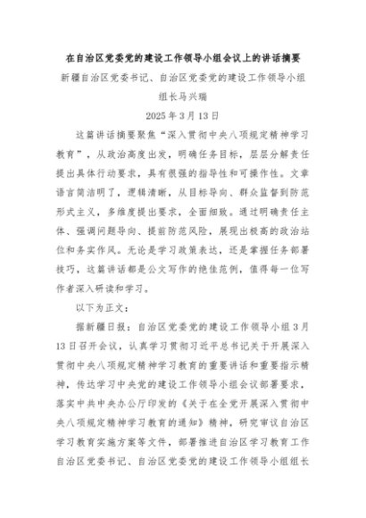 / 【七哥公文】2025年:在自治区党委党的建设工作领导小组会议上的讲话摘要+更多免费公文+VX:QiGeGongWen2024