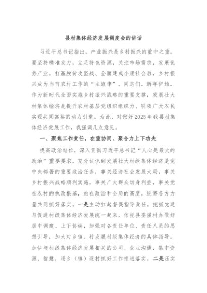 / 【七哥公文】2025年:县村集体经济发展调度会的讲话+更多免费公文+VX:QiGeGongWen2024