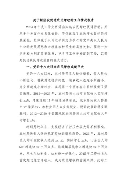 / 【七哥公文】2025年:关于新阶段促进农民增收的工作情况报告+更多免费公文+VX:QiGeGongWen2024