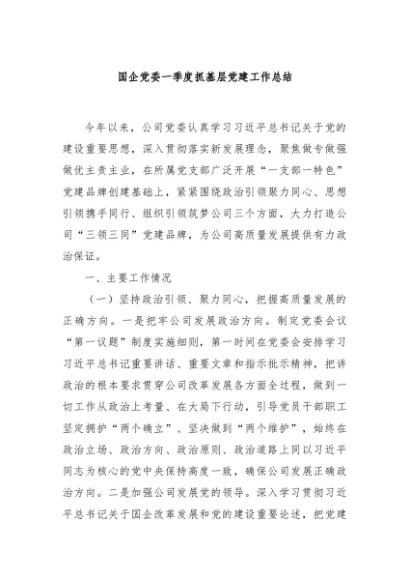 / 【七哥公文】2025年:国企党委一季度抓基层党建工作总结+更多免费公文+VX:QiGeGongWen2024
