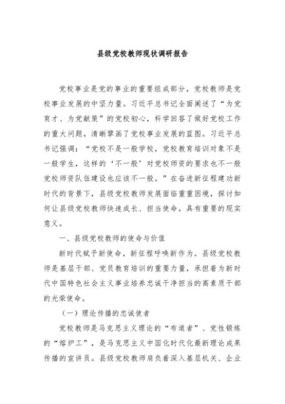 【七哥公文】2025年:县级党校教师现状调研报告+更多免费公文+VX:QiGeGongWen2024