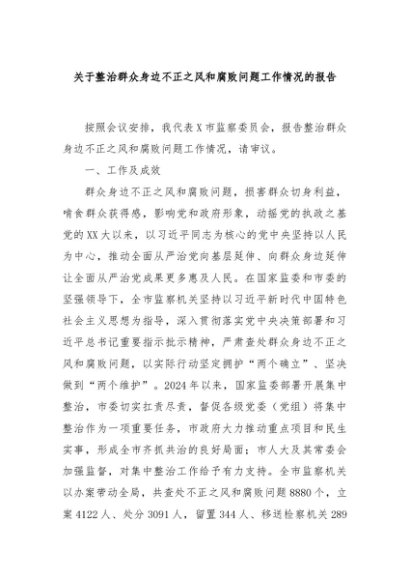 / 【七哥公文】2025年:关于整治群众身边不正之风和腐败问题工作情况的报告+更多免费公文+VX:QiGeGongWen2024