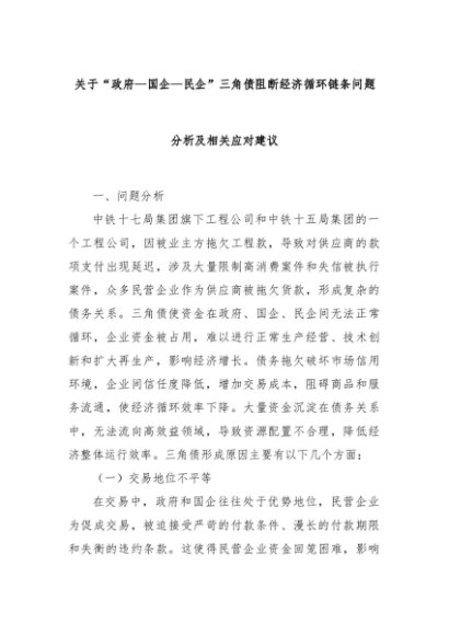 【七哥公文】2025年:关于“政府—国企—民企”三角债阻断经济循环链条问题分析及相关应对建议+更多免费公文+VX:QiGeGongWen2024