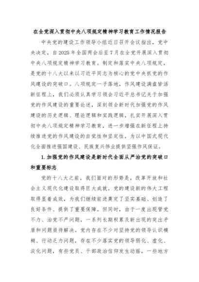 【七哥公文】2025年:在全党深入贯彻中央八项规定精神学习教育工作情况报告+更多免费公文+VX:QiGeGongWen2024