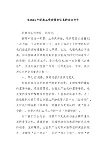 / 【七哥公文】2025年:在2025年巡察工作动员会议上的表态发言+更多免费公文+VX:QiGeGongWen2024
