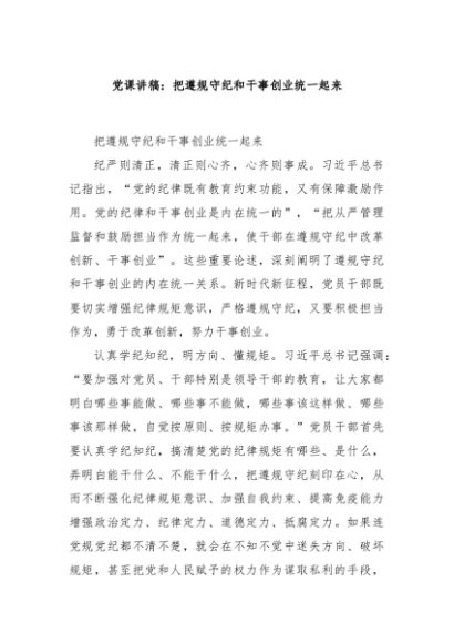/ 【七哥公文】2025年:党课讲稿:把遵规守纪和干事创业统一起来+更多免费公文+VX:QiGeGongWen2024